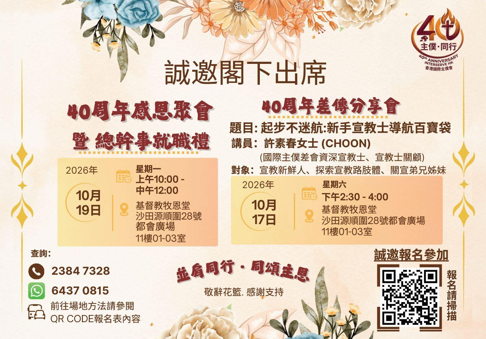 香港國際主僕會40周年感恩聚會暨總幹事就職禮 和 40周年差傳分享會